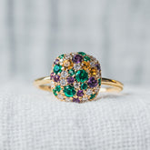 Osez la couleur avec notre bague Bouquet d'émeraude (pierre de naissance du mois de mai), citrine (pierre de naissance du mois de novembre), améthyste (pierre de naissance du mois de février), et diamants (pierre de naissance du mois d'avril). Une pièce vibrante où chaque pierre raconte une nuance, une émotion, une énergie.